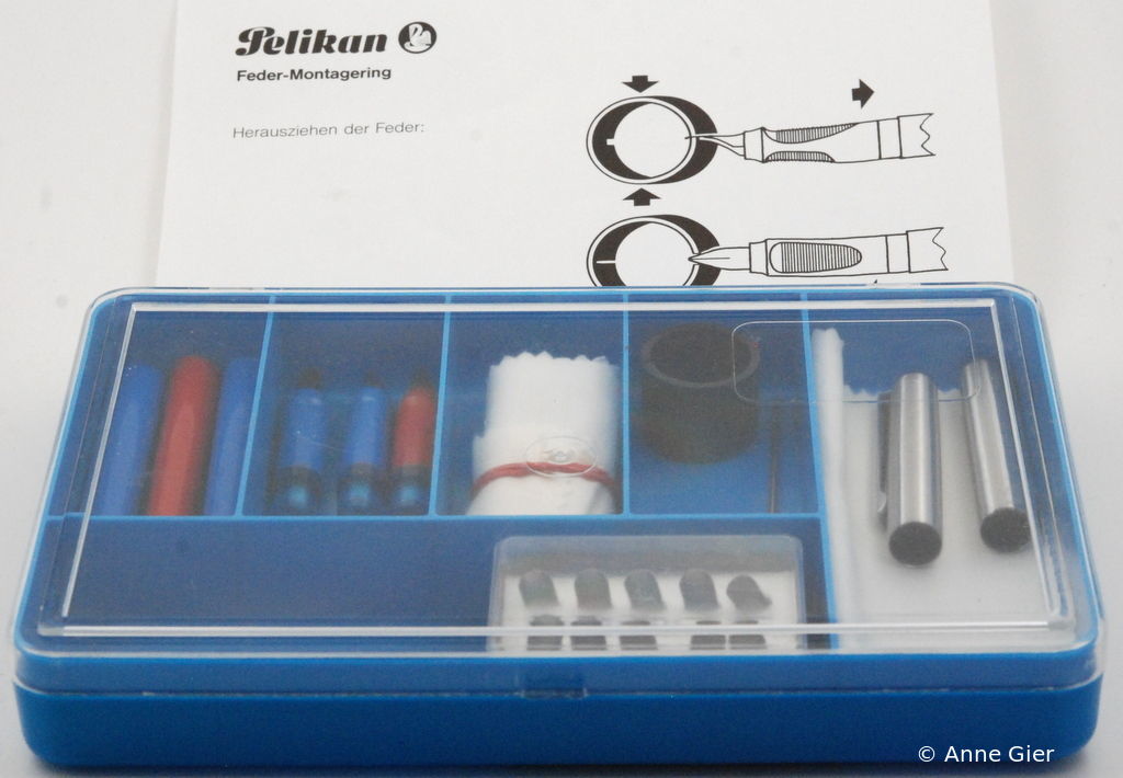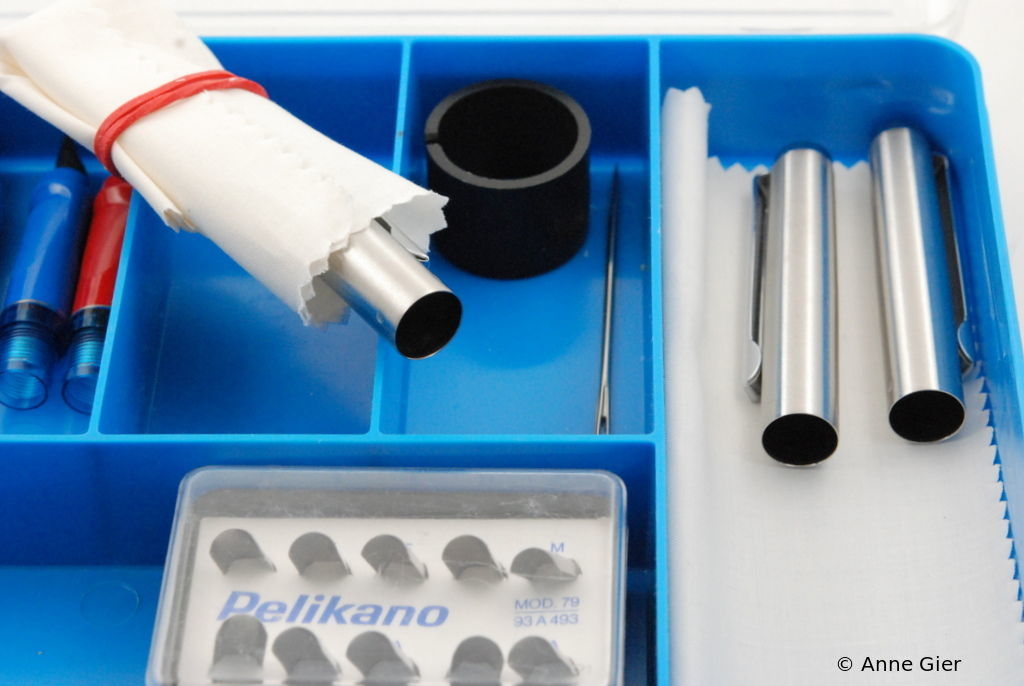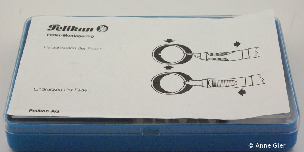 The simple unscrewing of the nib units risks breaking off the fins of the ink feeder. Pelikan therefore offered special pliers to protect the fins.